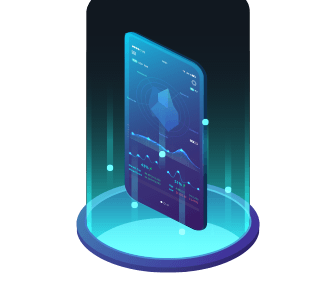 dark background with light blue and light green dots and lines in a 3D perspective