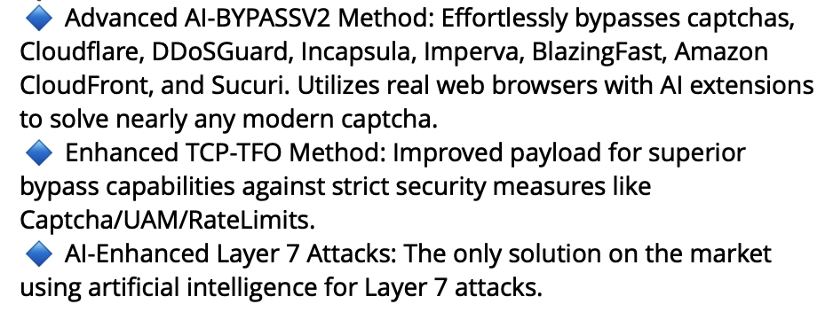 The integration of AI into DDoS attacks is relatively new but is rapidly transforming the capabilities of these services. Unlike traditional DDoS attacks, which often rely on brute force or high volumes of traffic, AI-driven attacks can be more targeted and intelligent in their approach. For example, AI allows attackers to fine-tune their attacks based on real-time data, making it possible to bypass common defenses, identify vulnerabilities, and even mimic legitimate traffic to evade detection.