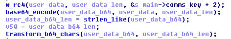 The query parameter “id” contains data encrypted with the following process: Unlike other parts of FormBook, the generation of the “comms_key” is easy—it boils down to the SHA1 digest of the C2. Using a Python snippet, the communications key for the analyzed sample can be generated like this: The “transform_b64_chars” function does the following character transformation: