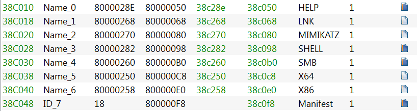 While reviewing the additional Windows PE files uncovered, we discovered three new resource files used (Figure 1). These resources files allow adversaries to steal credentials and propagate the malware.