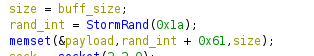 While examining the DK_Flood and UDPFlood function we see how Lucifer generates the payload for these packets. It’s quite a simple process in which the malware uses GetTickCount and Random + 3 to generate a pseudo random number. The pseudo random number is then divided by 26, the number of letters in the English alphabet, and to finish it off adds 0x61(97) to get the lower ASCII character. The ASCII character and the payload size that is set by the attack is then used by memset to create the payload as shown in Figure 7.