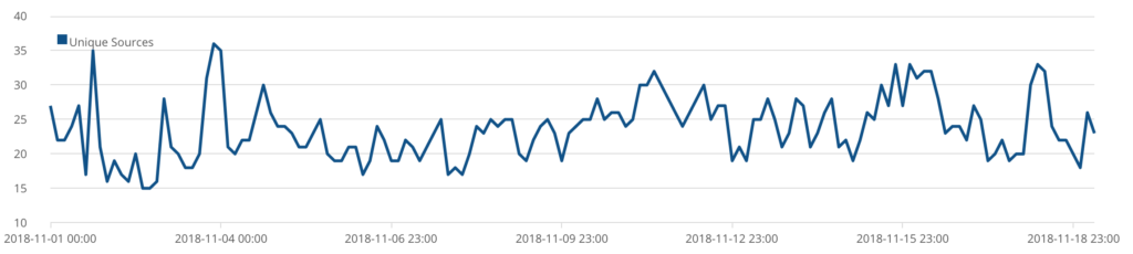 Fig 1: Number of Hadoop YARN Exploits Attempts What’s surprising is that so many exploit attempts are being delivered by only a handful of unique sources.