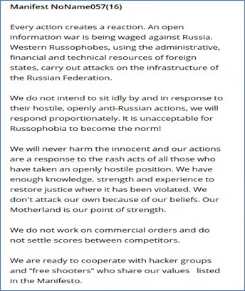 Their self-declared mission statement was to counter-act open hostility towards Russia, targeting NATO-aligned countries. Additionally, they stated an openness to collaborate and would not target innocent people, though the latter part of that statement has not held true.