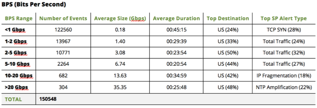 Each week ASERT produces a weekly threat intelligence bulletin for Arbor customers. In addition to providing insights into the week's security news and reviewing ASERT's threat research activities, we also summarize the weeks DDoS attack data as reported by over 330 global Internet Service Providers that share anonymized traffic statistics and DDoS event data. Here's a snippet of the DDoS statistics from the week ending March 23rd: [caption id="attachment_8950" align="aligncenter" width="644"]