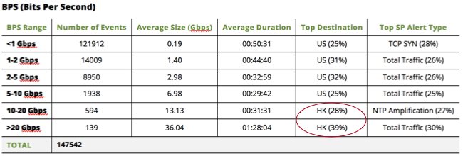 DDoS Statistics from ASERT's Weekly Threat Bulletin of April 13th[/caption] Security folks love anomalies so we decided to look at DDoS attacks targeting Hong Kong for the past month to see if anything stood out from a DDoS attack perspective.
