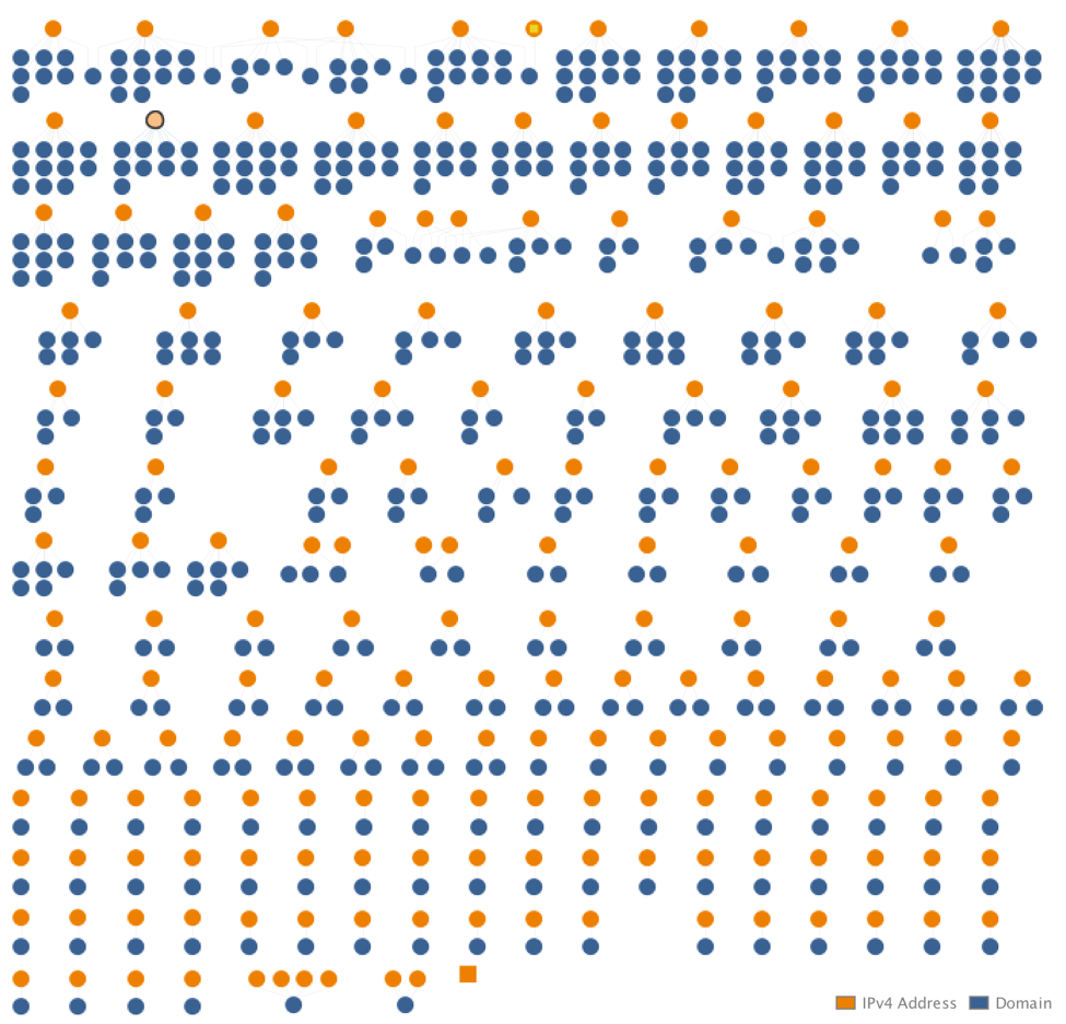 Nodal Analysis of Target IPs to ASNs. Note the lack of clustering.[/caption] As illustrated, the targeted IP Addresses are highly scattered across 52 different ASN's. Following is a Maltego graph associating the target IP addresses with domains known to have resolved to those IPs at some point during the April 1st through 8th timeframe based on pDNS information from PassiveTotal. [caption id="attachment_8943" align="aligncenter" width="975"]