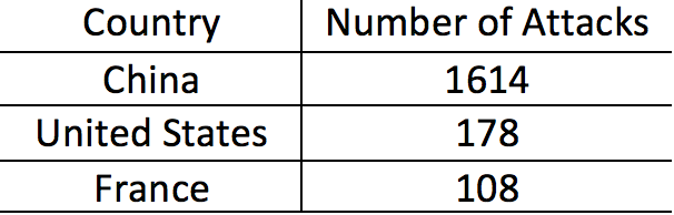 The following table lists the top 3 reported source countries for attacks that were sourced solely from a single country: [caption id="attachment_8940" align="aligncenter" width="384"]