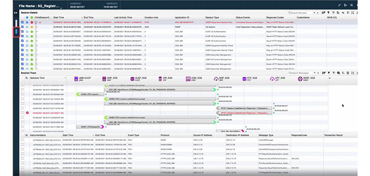 From this view, you can launch nSA to look at the session trace from the edge of your RAN to the core.