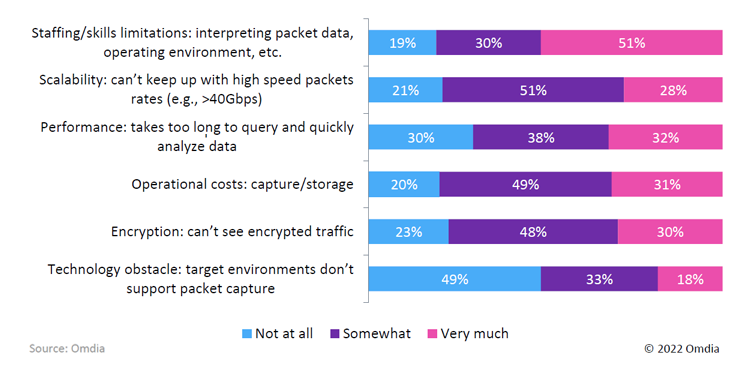 NETSCOUT OCI also allows organizations to overcome the barriers to using packet-based data that were mentioned in the Omdia report. For example: