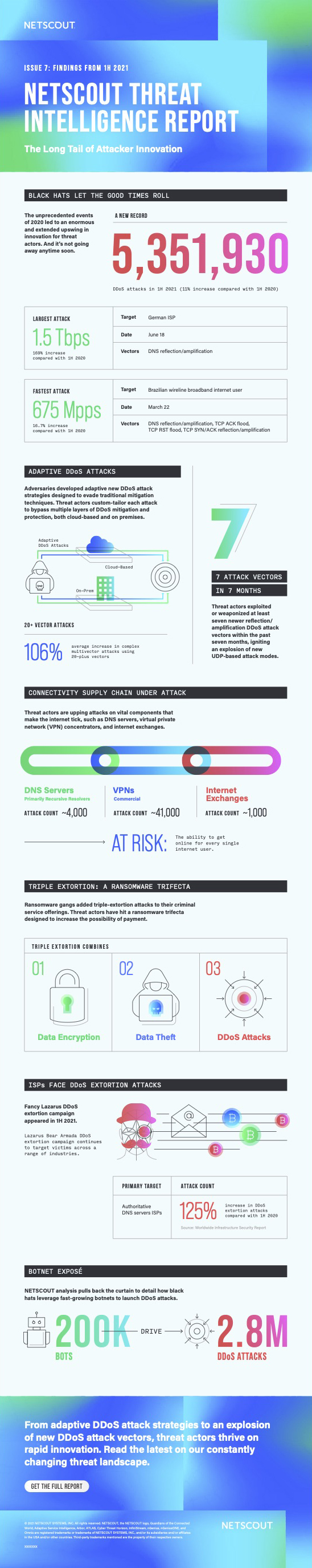 As NETSCOUT’s 1H 2021 Threat Intelligence Report shows, the long tail of cybercrime innovation swept through the lockdown days of the COVID-19 pandemic to infiltrate the bulk of 2021.