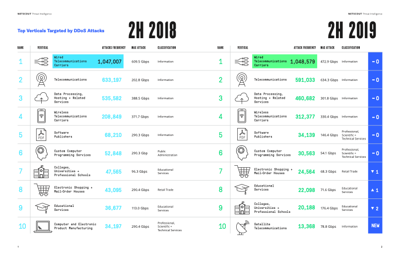 For our upcoming 2H 2019 Threat Intelligence Report, we analyzed attack data by North American Industry Classification System (NAICS) codes, which group companies into 22 broad categories that contain multiple large subvertical sectors. Our top ten list shows some interesting trends in the top 10 most targeted sectors year over year—check out the full report on February 18th for more details on top attack targets.