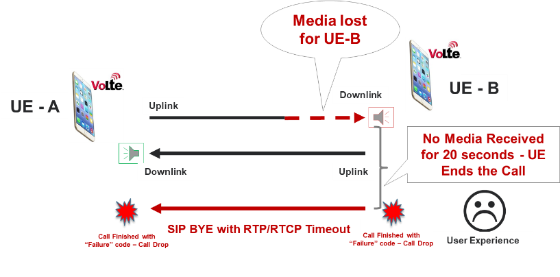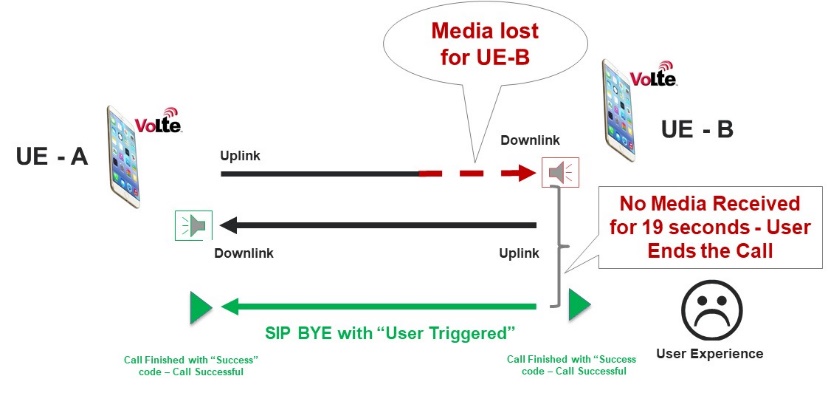Let’s take another dropped call scenario. Consider the situation where one caller cannot hear the other, as in the previous example, but this time, one party hangs up before the preset RTP timer expires. In this case, since the user ends the call, the handset considers this termination “User Triggered.” Since the call was ended by the user, despite it being a failed call, the network will classify it as successful. Such calls should be flagged as “User-triggered Call Drops” to indicate the user had no choice but to end the call because of a network issue. That designation would be far more accurate, and far more useful to the service provider.