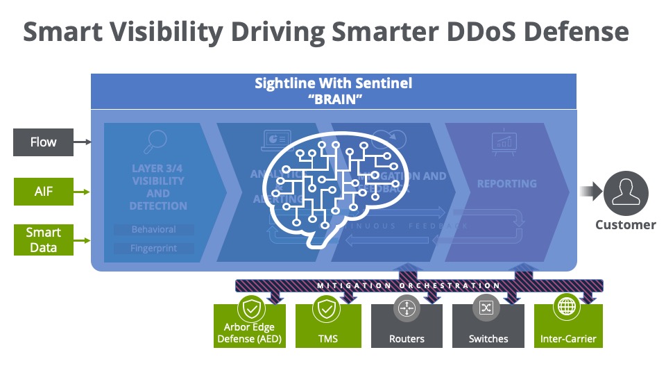 Arbor Sightline with Sentinel combines the technologies of NETSCOUT and Arbor to deliver smarter traffic visibility and threat detection, as well as an automated, fully integrated DDoS defense.