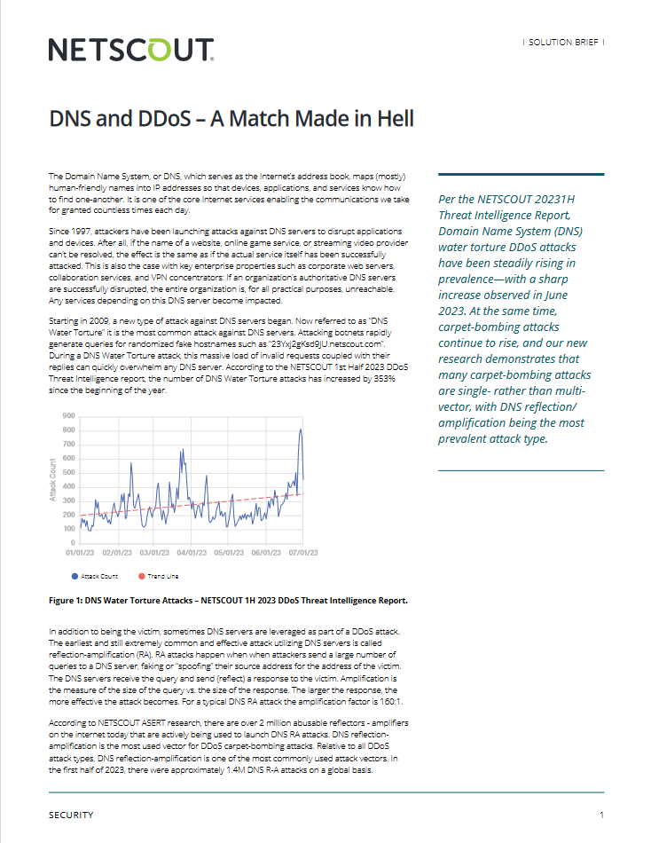 Learn how NETSCOUT Arbor Edge Defense and Arbor Enterprise Manager can detect and mitigate a DNS Water Torture or NXDOMAIN DDoS Attack, through machine learning, smart rate limiting, threat intelligen