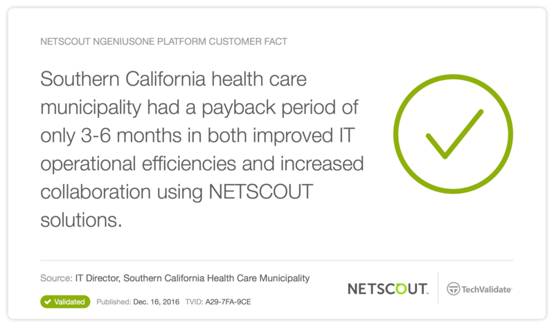 Healthcare organizations reduced MTTR by 25% or more and consider NETSCOUT best-in-class for hybrid cloud